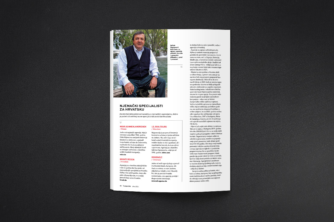 U zimskom broju časopisa Turizam info čitajte veliki prilog o Nijemcima kao gostima, njihovim preferencijama, uz pregled agencija i sajmova prema kojima se valja usmjeriti kako bismo iskoristili puni potencijal ovog ogromnog tržišta koje broji više od 45 milijuna aktivnih putnika.
