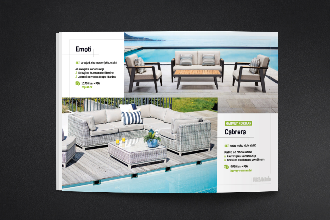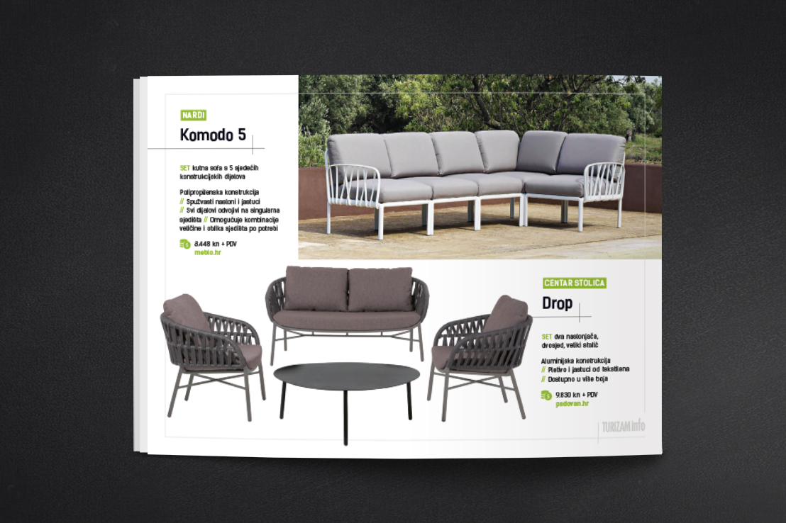 Iz časopisa Turizam info izdvajamo izlog aktualnih modela outdoor sjedećih garnitura.